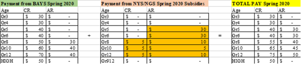 The following paragraphs describe the process for BAYS Referee Pay. The process is not straightforward as there are three organizations involved: BAYS, NYS and NGS.